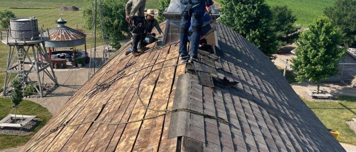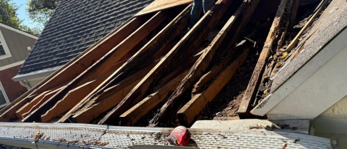 1 - Initial evaluation: We inspect the current roof to identify damage and determine the need for full replacement.